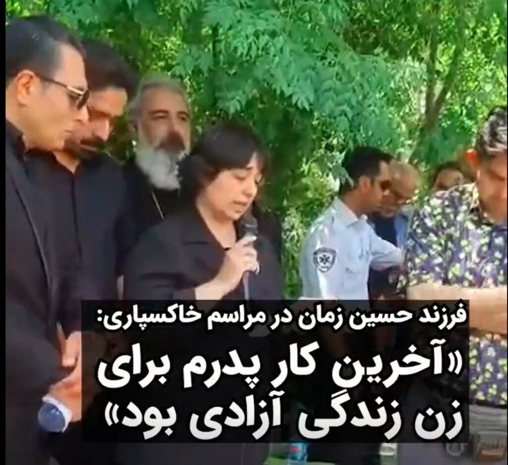 جمعه بیست و دوم اردیبهشت ماه پیکر حسین زمان خواننده سرشناس ایران در قطعه هنرمندان بهشت زهرای تهران به خاک سپرده شد. زینب زمان دختر او که با قید وثیقه از زندان اوین آزاد