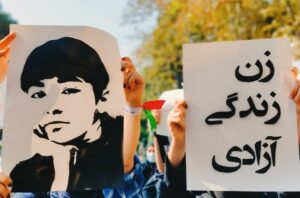م. روغنی رهبری زنان بهویژه دختران دانشجو و دانشآموز در جنبش زن زندگی آزادی، شعار محوری “مرگ بر خامنهای” که در تمام اعتراضات شهرهای مختلف کشور شنیده شد، آتش زدن عکسهای خامنهای و خمینی